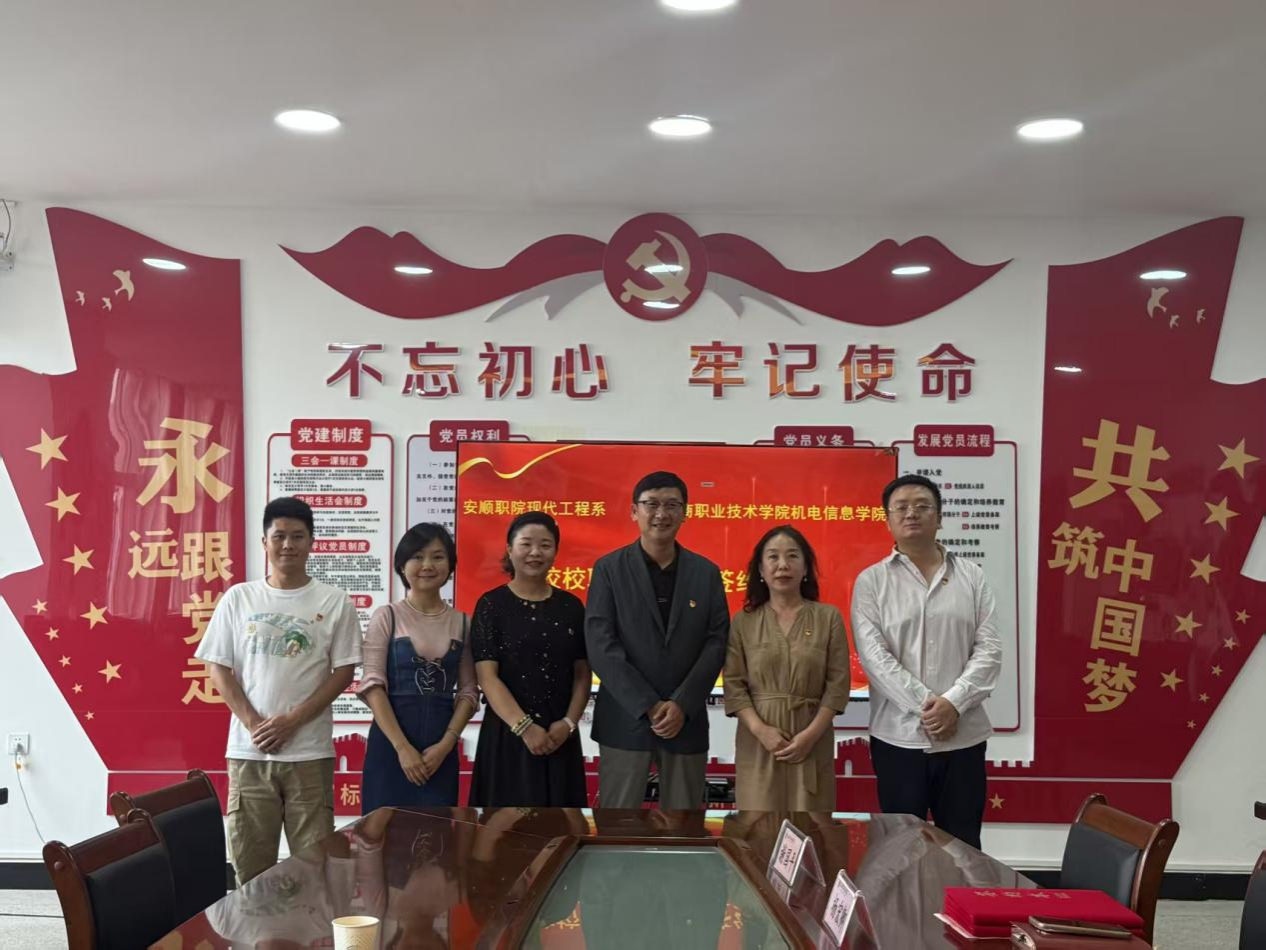 为深入贯彻党的二十大精神,落实新时代党的建设总要求,创新基层党建工作模式,激发基层党组织活力,9月22日下午,安顺职院现代工程系教工党支部与义乌工商职院机电一体化专业群党支部联建签约仪式在现代工程系会议室顺利举行,开启了跨区域职业院校基层党组织协同发展新路径。现代工程系党总支班子成员及教工党支部党员代表参加。签约仪式由现代工程系党总支书记董璐主持。