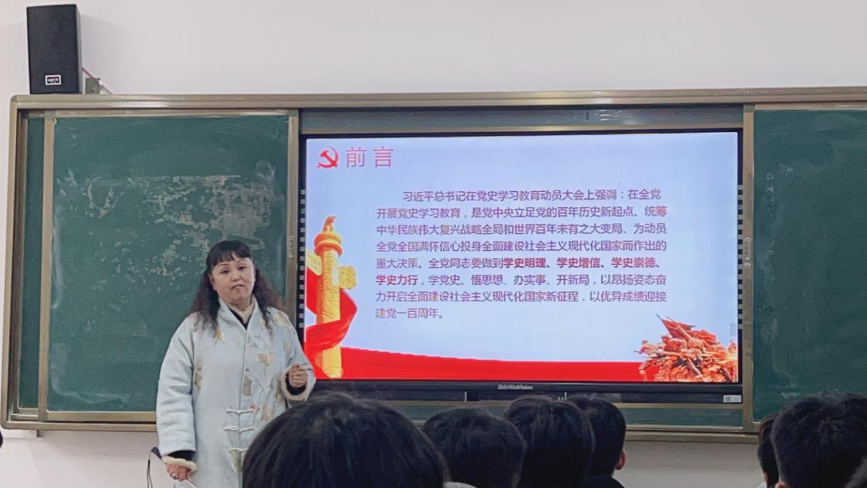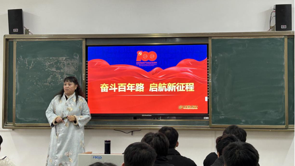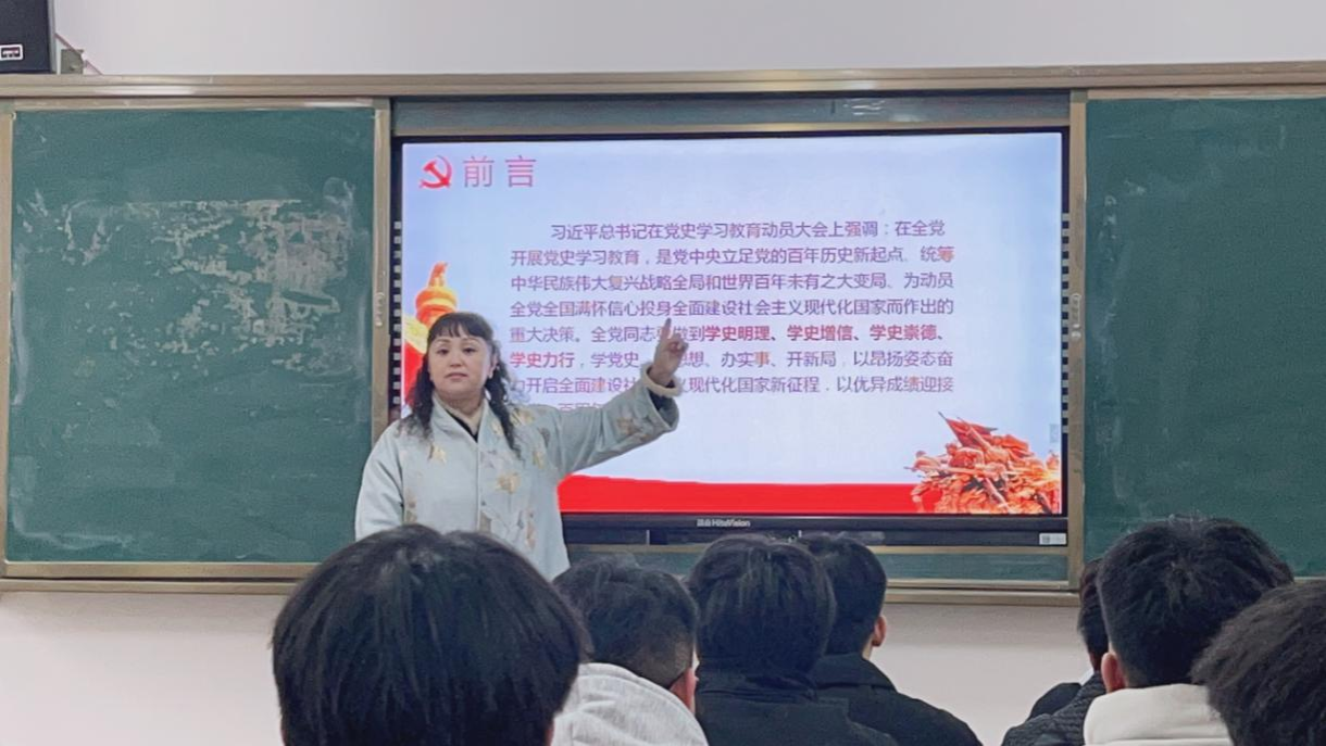 方莉副院长从“丰功伟业、恢宏史诗”“精神血脉、代代相传”“以史为鉴、开创未来”三个方面进行带领学生回顾党的百年奋斗历程,深入解读了以史为鉴的重要意义,引导学生从党的百年历史中汲取智慧和力量。强调在新征程上,学生们要肩负起历史使命,不断开创未来。只有坚定理想信念,练就过硬本领,以优异的成绩和与时俱进的精神状态,才能在实现第二个百年奋斗目标的新征程中发挥自己的价值。
