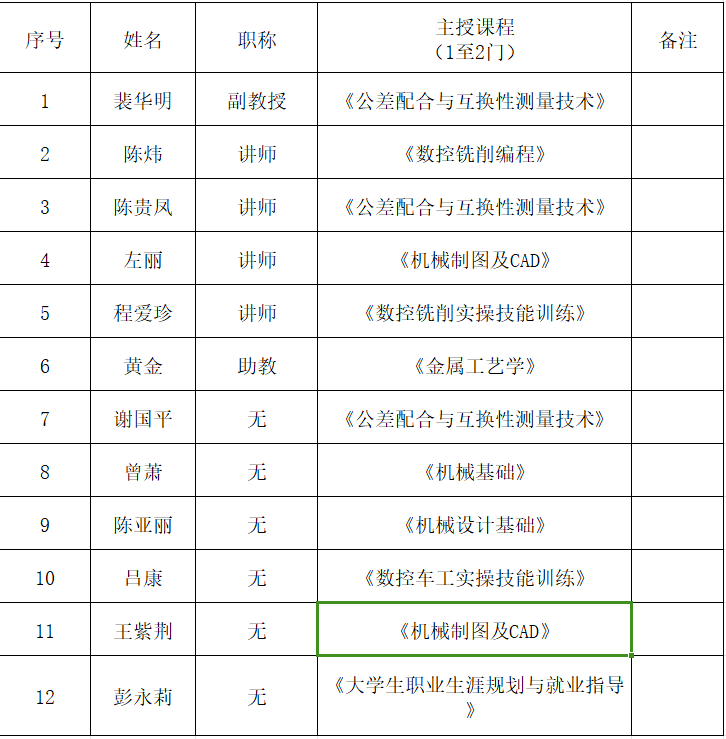 数控技术专业师资队伍