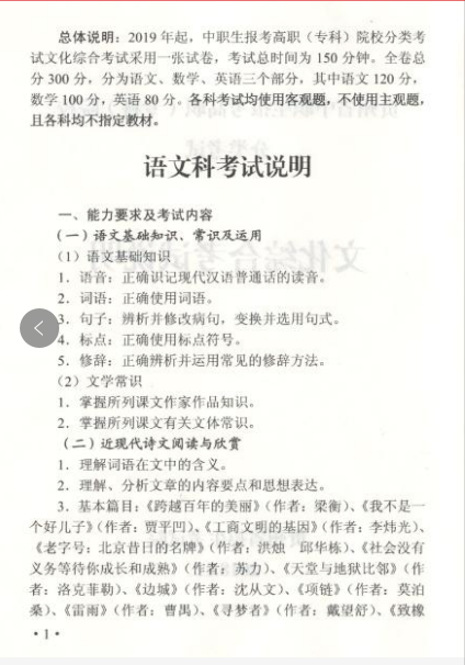 贵州省中职生报考高职(专科)院校分类考试文化综合考试说明