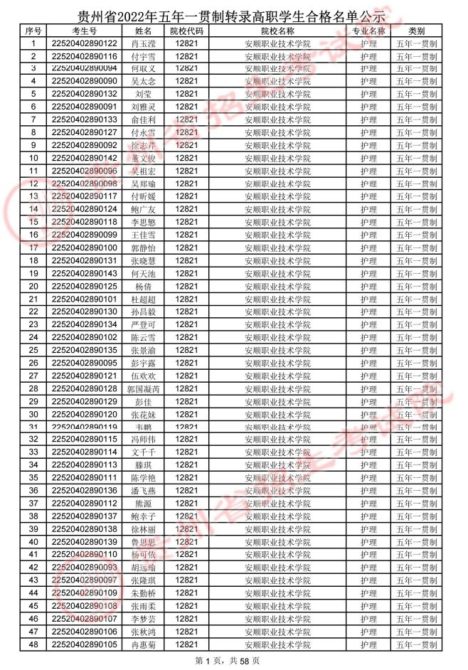 贵州省2022年五年一贯制转录高职学生合格名单公示.pdf